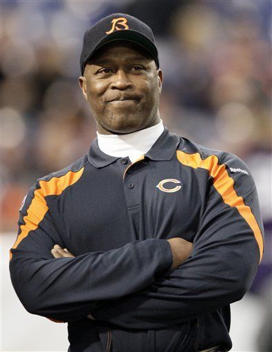 Lovie flashes his 8-8 smile: no teeth, tight-lipped, not quite a smile but not quite a frown either