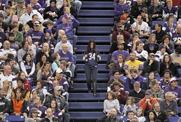 While tackling First Down Williams, a Viking defender tries to prevent him from signaling a first down