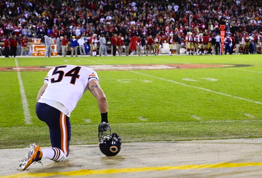 No one should be surprised that it started off badly, but this time it never got better.  SF came out running like a well-oiled machine, and they won every single play of the game.  On our first defensive play, we committed an Unnecessary Roughness penalty.  On our first offensive pass play, we got sacked.  The Bears allowed a FG on SF’s first drive, the first time we’ve allowed a score on an opening drive all season.  Then we let SF score on their second, third and fourth drives just to prove that our offense isn’t our only problem right now.
