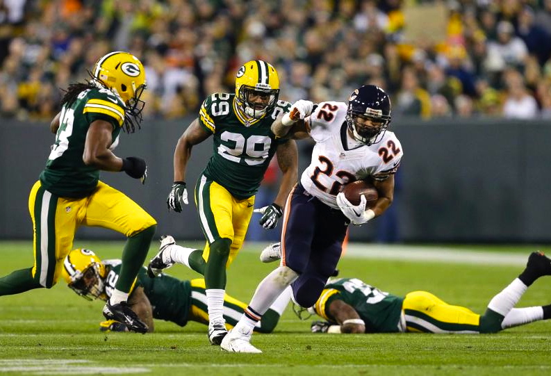 We gained 443 yards and put up 27 offensive points – with a backup QB?! We allowed only 1 sack and had no turnovers – with a backup QB?! McCown, the first of eight backups to win at Lambeau since 2007, finished a decent 22 of 41 for 272 yards, 6.6/attempt, 2 TD’s, 0 INT’s and a 90.7 QBR. And Matt “Rushing For Over 100 yards Is My New” Forte had 125 yards rushing (his first time over 100 this season) and 54 receiving (a season-high 179 total) on 29 touches for an average of 6.2.