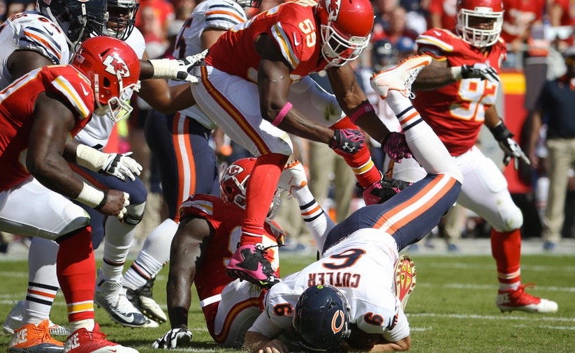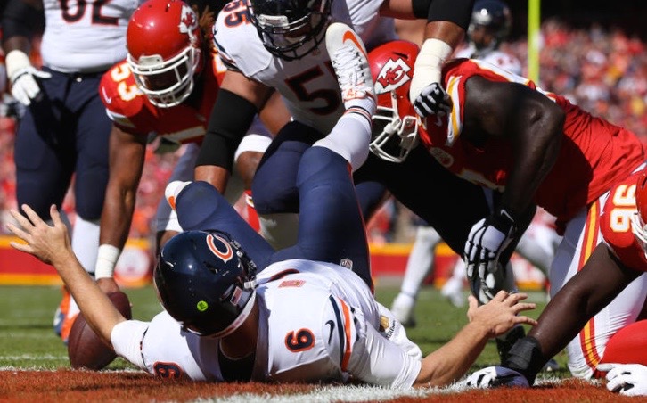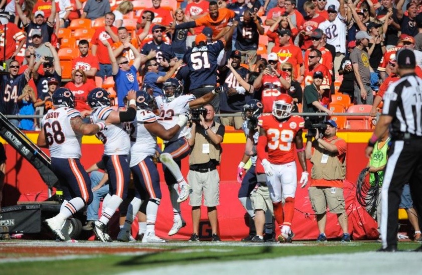 It started slowly. We drove to mid-field before punting, as we wanted to wait until our 2nd possession to shit the bed. But we did get a jump on it after KC 3-and-outed, with Sherrod “If You Add Jermon Bushrod And Sherrick McManis’s Names, You Get Mine” Martin called for holding on the punt return, pushing us back inside our 10. Incidentally, the ref said it was on Jeremy “Do All Black Guys Look Alike To You, Ref?” Langford. Not to be left out, Zach “I’m White So The Ref Was Pretty Sure It Was Me” Miller false started on our first play, moving us back to the 5. It was 2 plays later that Cutler pounced on the opportunity to get sacked “into” the end zone, fumble, and let KC literally fall on the ball for a TD. You really have to hand it to him for his creativity.