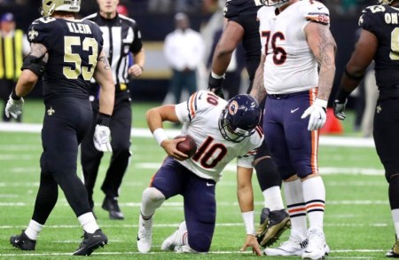 The Bears went down to NOLA on Sunday to make a statement to the NFC.  Unfortunately, that statement was an unequivocal and synchronous: “We’re not ready yet.”  And it was an argument they came prepared to defend.  Along with Zach “If You Read This Blog, You Saw This Coming” Miller’s freak knee injury (which literally took points off the board), we bone-headed the crap out of this game by figuratively taking points off the board as well.  Trubisky threw a bunch, but his most notable toss – his last – was caught by the Saints.  Even our defense came up lame.  Sure, the Saints are good.  But after lining up next to them, the Bears clearly don’t have a leg (or knee) to stand on in the NFC debate.