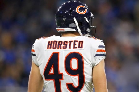 Buck, turning his fanboying onto Horsted, and hardly even mentioning Mitch: “Jesper Horsted spent the first 10 weeks of the season on the practice squad…2 catches in the NFL. 1 last week, 1 this week. And a TD today on Thanksgiving to tie the game…(grunt)…Jesper Horsted, undrafted out of Princeton, converted WR to TE, getting a chance…(grunt, followed by a groan)…Good throw Trubisky. Tie game in Detroit, 17 all.” ~ Buck was soon thereafter seen writing #49 on his panties, and then tossing them down to the Bears’ sideline.