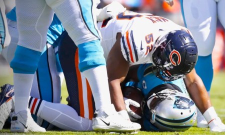 Not only did the Bears sack Teddy 4 times and get 3 takeaways (3, that is, that weren’t called back), but we got 6 QB Hits on him. And between the sacks and scrambles, we tackled him at least a dozen other times, and it definitely impacted his performance. We only let CAR reach our endzone once – which wasn’t until we had a 14-point lead in Q4, and after we committed 4 penalties on that drive (which we’ll address later). That’s the 3rd game in a row where the Bear’s D has only given up 1 TD. And in 6 games, our D has given up the fewest TDs in the entire NFL (9), and that counts the 10 teams that have only played 5 games. So the D seems to be coming together.