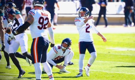 On a side note, SF’s Robbie Gould missed 2 FGs and a PAT against AZ in a game we needed the Cards to lose.  I suspect foul play, but his 9ers managed to hang on.  Gould is now just 77% over the last 2 seasons.  And with Cairo “Head Shoulders Knees And Toes, Knee” Santos engaged in the greatest Bear’s kicking season ever, moving on from Robbie now looks like a smart move.  Santos went 2/2 Sunday, extending his consecutive FG streak to 24, which ties Gould’s franchise record (‘06).  Incidentally, the 3rd longest Bear streak (17 straight) is shared by Gould (‘15) and Butthead (’86).  If Santos hits his next attempt, not only will he set the streak record, but if he doesn’t miss more than once, he’ll also set the team record for FG% in a season (he’s currently 93.1%).  So Sunday could be a big F-U to Robbie that’s been 5 years in the making.